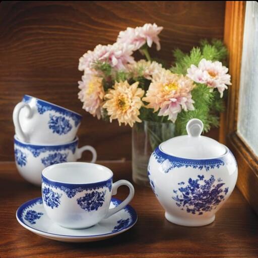 سرویس 12 پارچه فنجان و نعلبکی طرح فلورانس