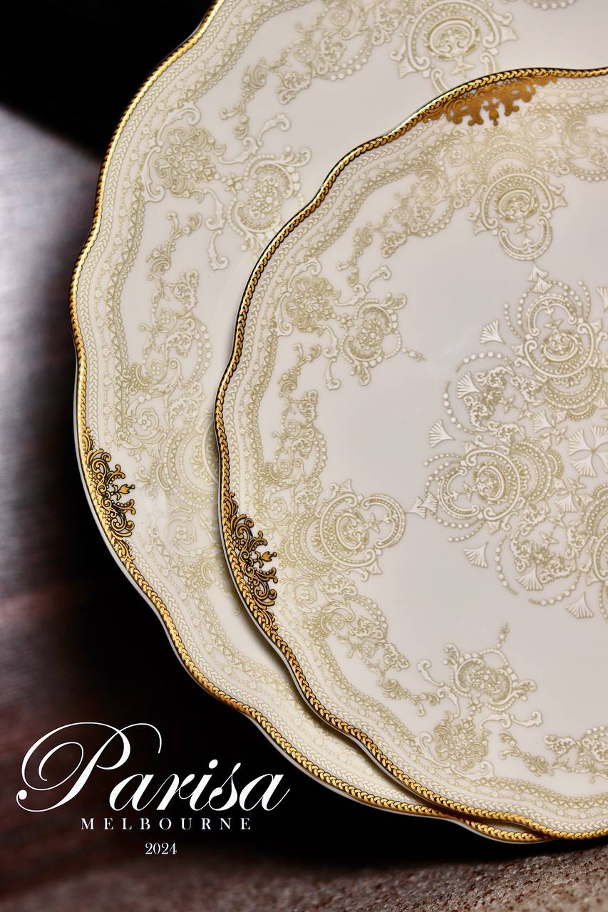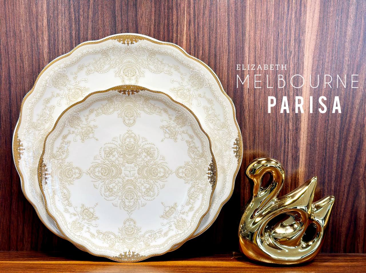 این طراحی با استفاده از متریال سلیس ایتالیایی و پلاتين صنعتی المانی انجام شده. این سرویس کاملا ضدخش و ضد لک میباشد وهمچنین بسیار سبک نیز می باشد. قالب ملبورن الهام گرفته از جدیدترین تکنولوژی روز دنیا از صنعت بن چاینا می باشد. چینی استخوانی الیزابت از لحاظ علم سرامیک محصولی بسیار سبک با قابلیت گذردهی نور بسیار شفاف وبا ضمانت ظرف شویی می باشد