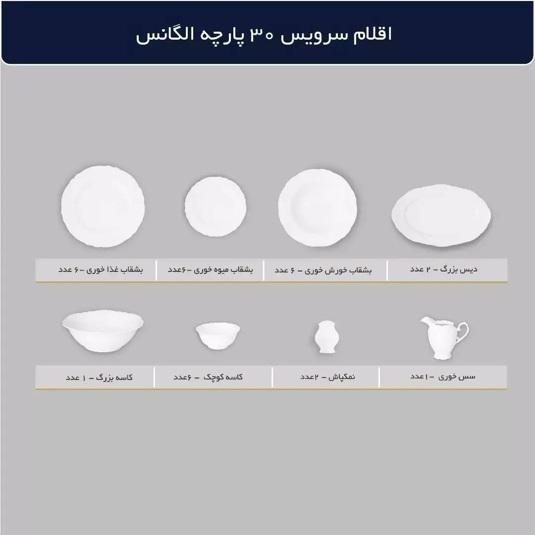 اقلام موجود در سرویس ۱۰۲ پارچه پردیس طرح سویل: